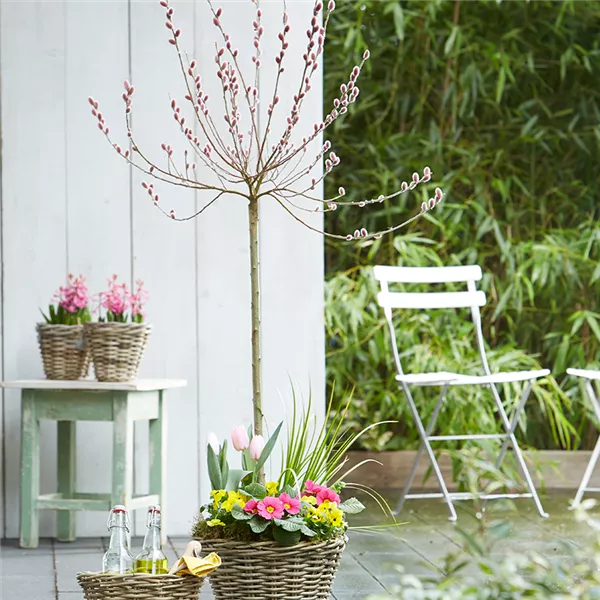 Die Rote Kätzchenweide (Salix) gehört zu den pflegeleichten Gartenpflanzen. Die Weide ist ein aufrechter Strauch, deren Kätzchen im Austrieb leuchtend rot sind. Später färben sie sich dann gelblich ein. Wichtig für ein gutes Gedeihen der Weide ist ein sonniger Standort mit einem gleichmäßig feuchten Boden. Das Weidenkätzchen blüht von Februar bis März und ist eine ökologisch wertvolle Pflanze, die als eine der ersten Nahrungsquellen für Bienen, Hummeln und Schmetterlingen dient.